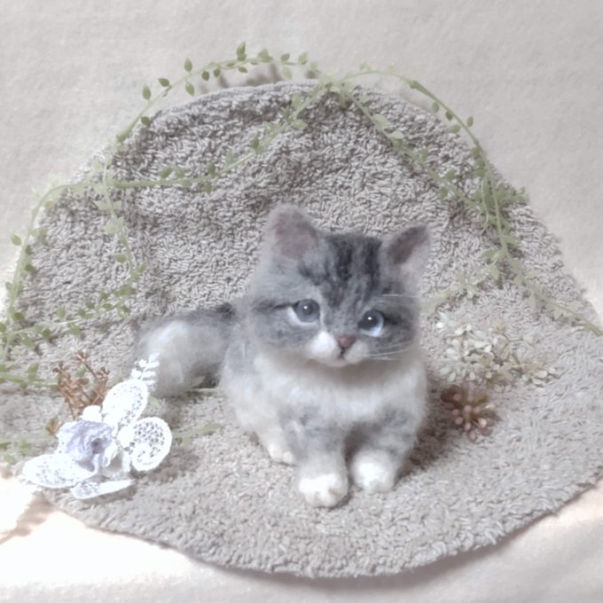 0 4 ちょっと前に作った仔です。 両手両足をぴろ~んと広げた状態のおちびさんです♪ #羊毛フェルト #ハンドメイド #猫 21/03/02 13:27