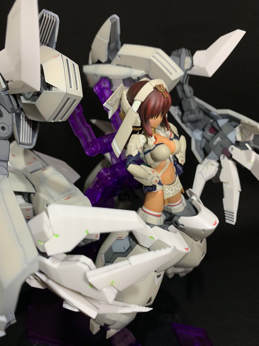 0 1 #メガミデバイス #兼志谷シタラ #ガネーシャ #アリス・ギア・アイギス ガネーシャMk3/T アーマー裏モールドがかっこいいので、3色塗分け&重力特性イメージで紫メタリック部分塗装。 21/06/28 09:55