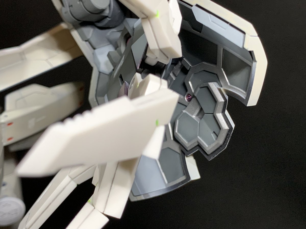 1 1 #メガミデバイス #兼志谷シタラ #ガネーシャ #アリス・ギア・アイギス ガネーシャMk3/B 内部フレームは2色展開。広い面が多かったボトムはスジボリ(謎のステルス機風)を追加。パネルラインスジボリを頂点にして少し角が出る様に加工。 どーしても付けたかったレドームはお気に入り。 21/06/28 17:02