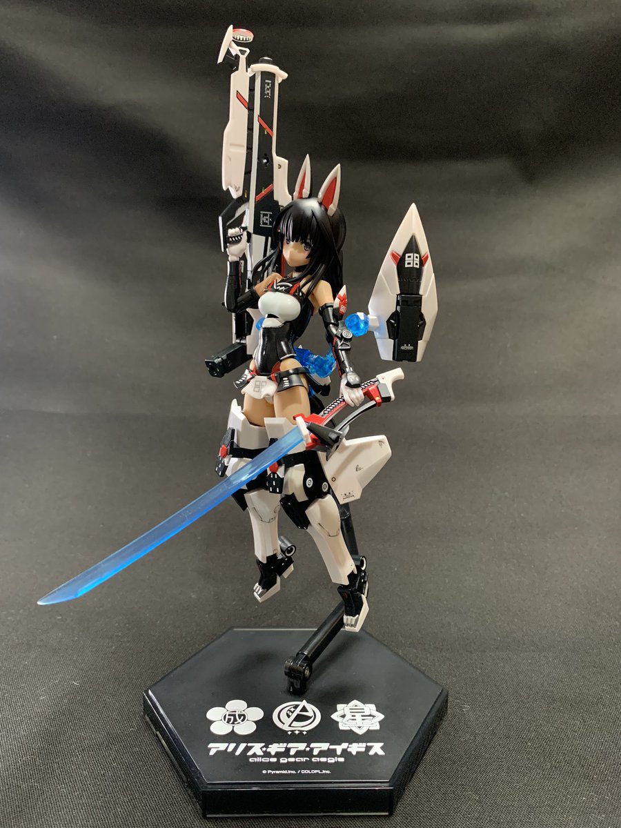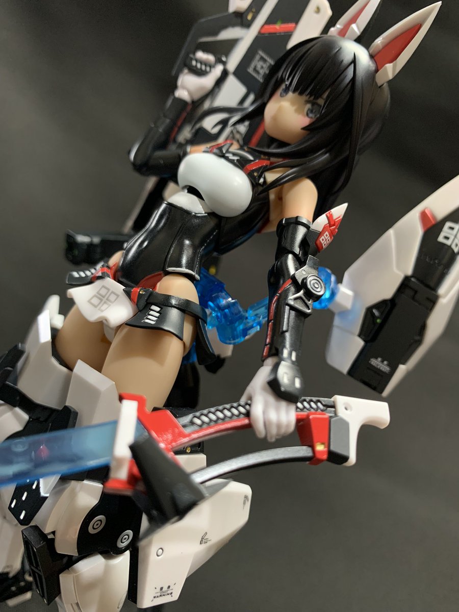 楓さん完成! 細かく塗り分けしたけど、完成後に塗り忘れを見つけてしまうなぁ 源九郎/Bのマル九はお気に入り。 #メガミデバイス #アリスギアアイギス #吾妻楓
