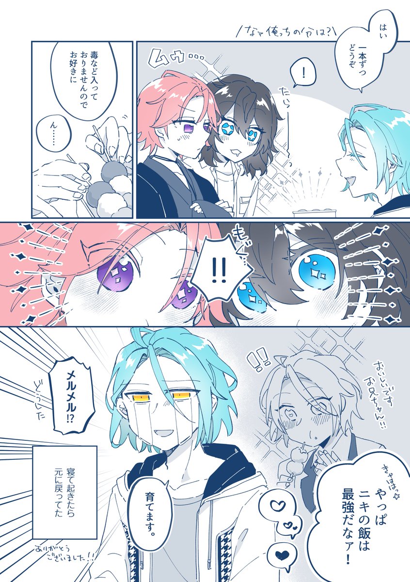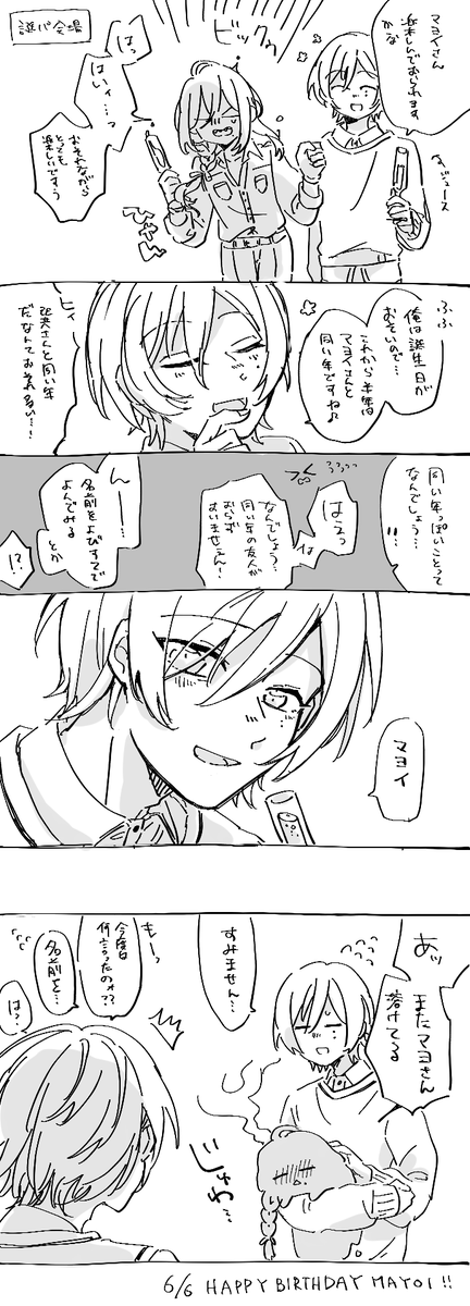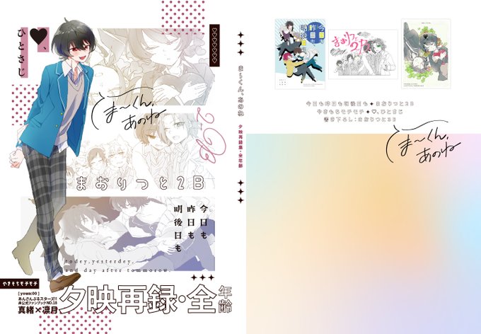【新刊告知】 ま〜くん、あのね : 夕映再録集・全年齢 A5/78P/¥1000 ※晃零要素/カラーあり まおりつの全年齢既刊再録集です。(描き下ろし5P)半分くらいはWEB再録済なので紙でほしい方向け。カラー本はフルカラーで再録しています。 ▼長い本文サンプルはこちら pixiv.net/artworks/10921… 1/3