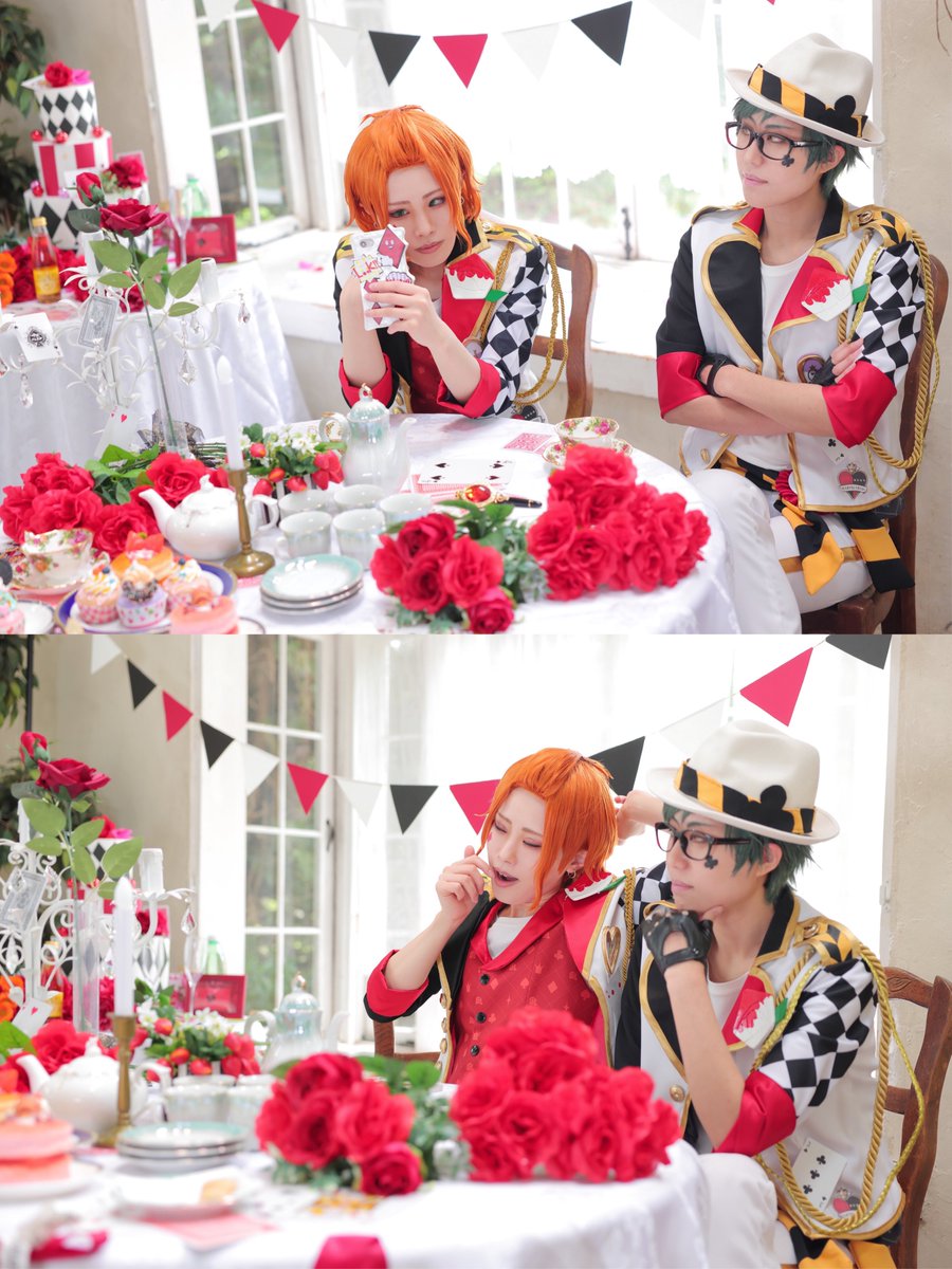 18 40 【※コスプレ】Side Cater♦️ 寮長が、急遽会議になってしまったので… なんでもない日の準備をして来ました🌹 エース♥️:ももの デュース♠️:雪葉 トレイ♣️:るーと ケイト♦️:ゆいき Photo by salt🧂 21/05/15 21:53