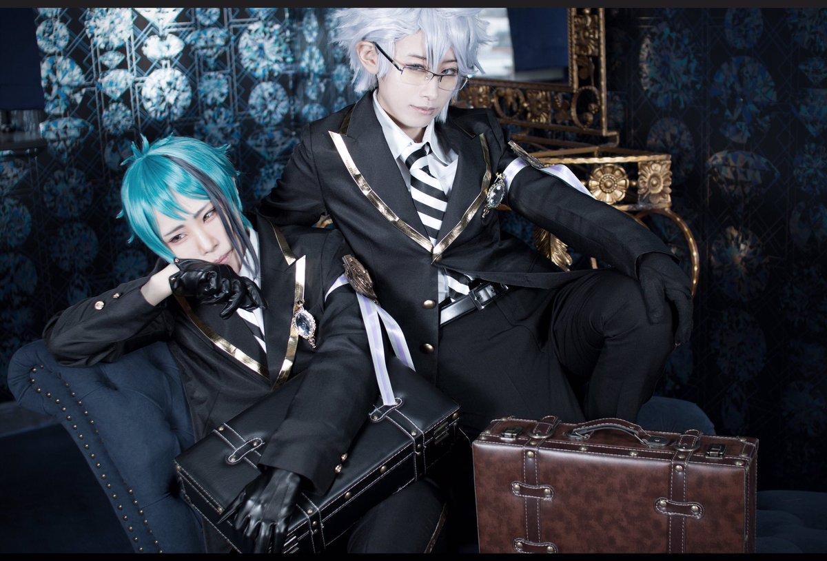 【※コスプレ】 そこに、トランクとソファーがあったから、服の広告ごっこした。 オクタもヴィル様みたいに、モデル出来ると思う✨ アズール:鶴屋 ジェイド:ゆいき