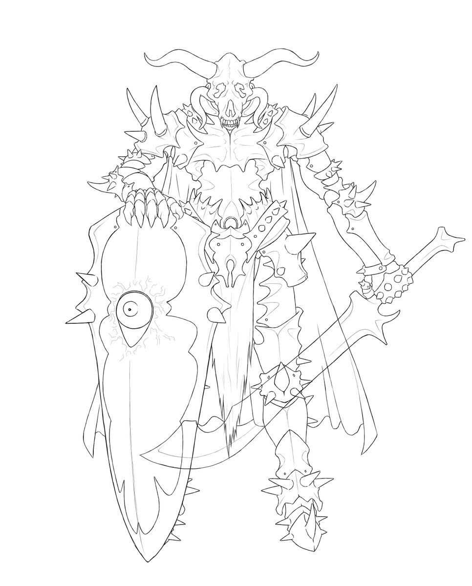 昔、チラシの裏に描いたラクガキをとりあえず清書しました。 色使い難しい…💦 なので線画も載せときます。 #絵 #イラスト #オリジナル #モンスター