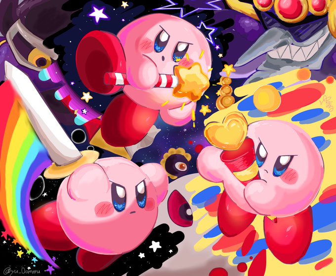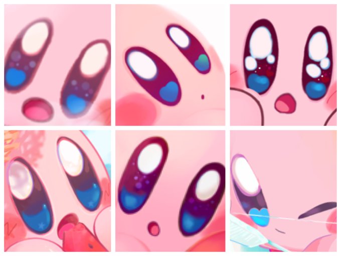 #あなたの描くカービィの目が見たい 目の青い部分をハートにさせるの可愛いし描きやすいから好き!最近はキラキラさせるのがトレンド🌌