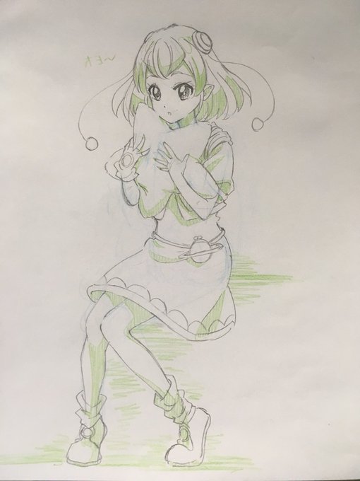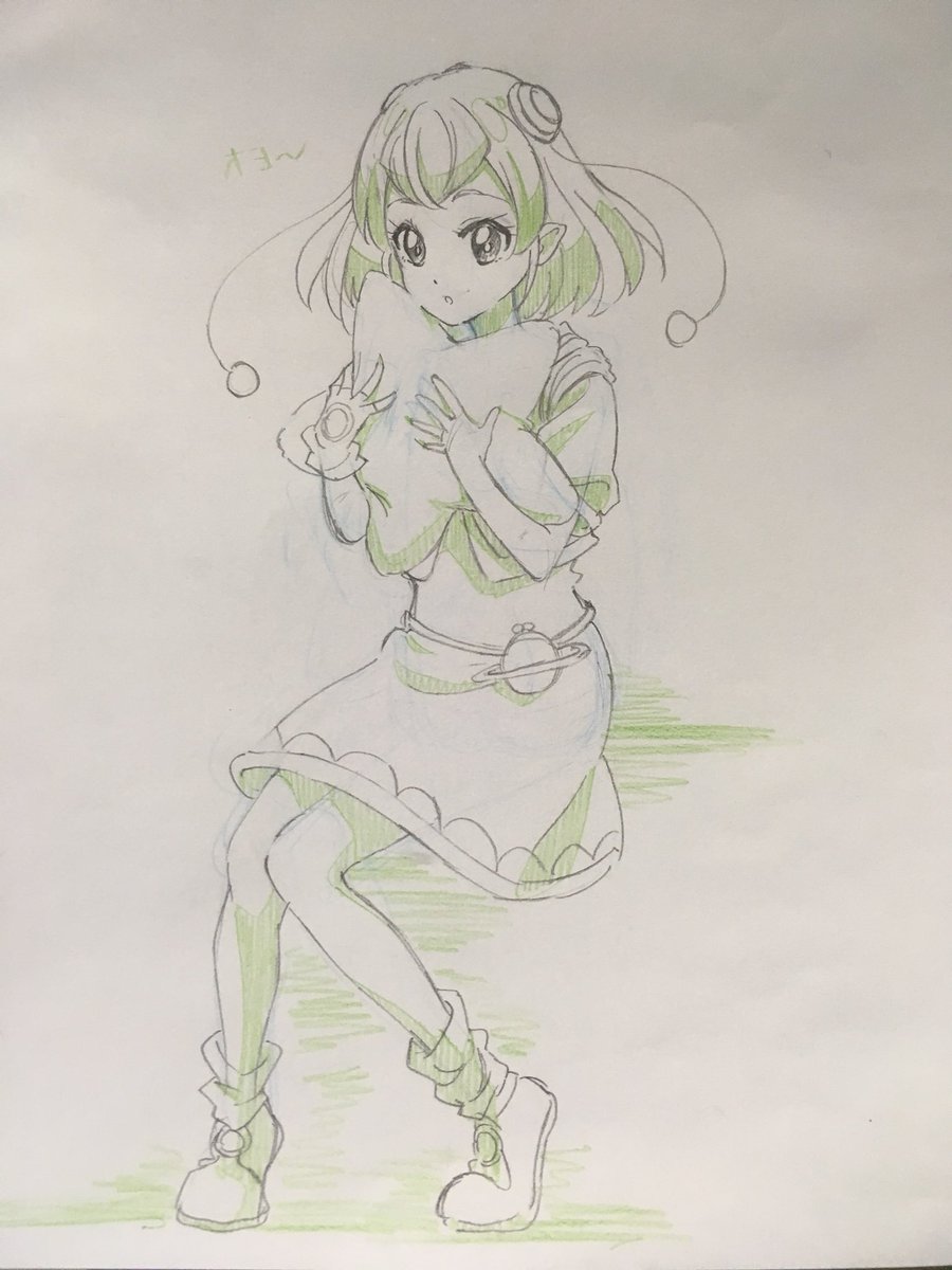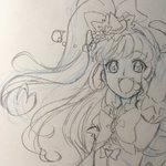 42 101 キュアミラクル雑な落書き キュアミラクルの好きなとこは ・毛先がハート型になってる ・パフスリーブ(?)がボリューミー ・髪と腰に付いてる水晶みたいなん ・三段のスカート ですね 19/02/03 14:29