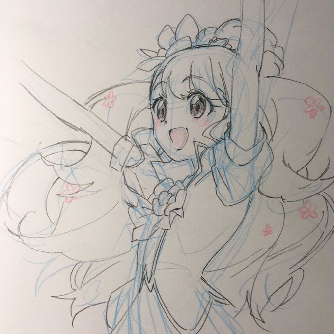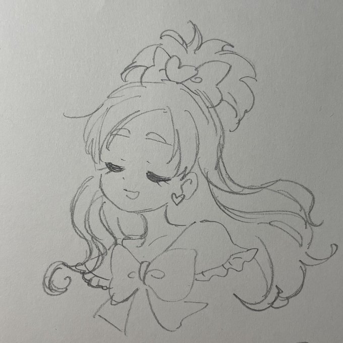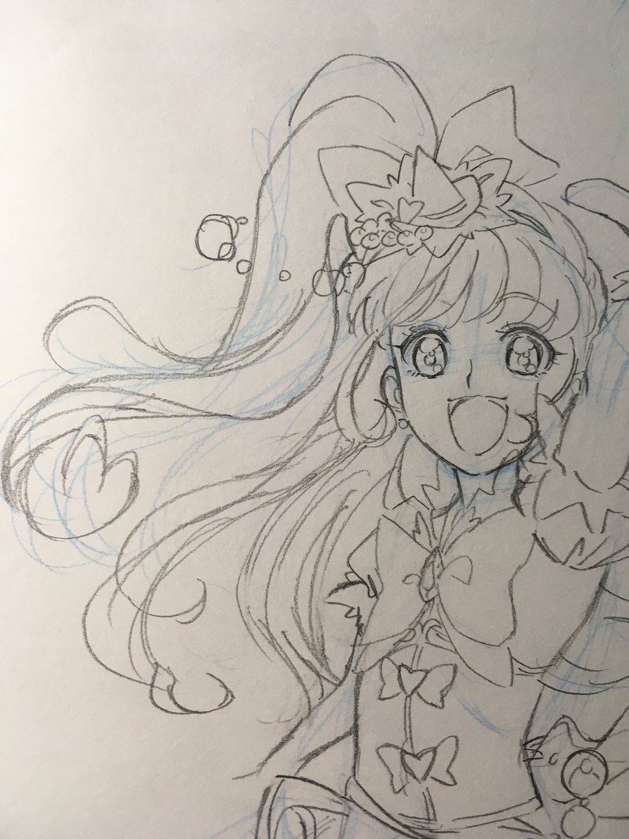キュアミラクル雑な落書き キュアミラクルの好きなとこは ・毛先がハート型になってる ・パフスリーブ(?)がボリューミー ・髪と腰に付いてる水晶みたいなん ・三段のスカート ですね