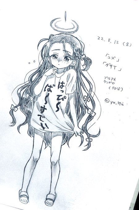 6 14 ユズお誕生日おめでとう!「ユズ」「ダサT」 50分 #ブルアカワンドロ部 #BlueArchive_1hour_drawing_club #ブルアカイラスト部 22/08/12 12:36