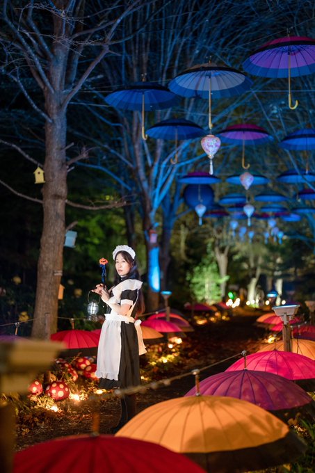 ハッピーハロウィン🎃👻 今日で10月も終わりですね🍁 . . #やくらいガーデン #星あかり #ライトアップ #夜撮影 #ポトレ女子 #ポートレート撮影 #メイド服 #コスプレ #portraitphotography #PhotoOfTheDay #photographylovers #Halloween