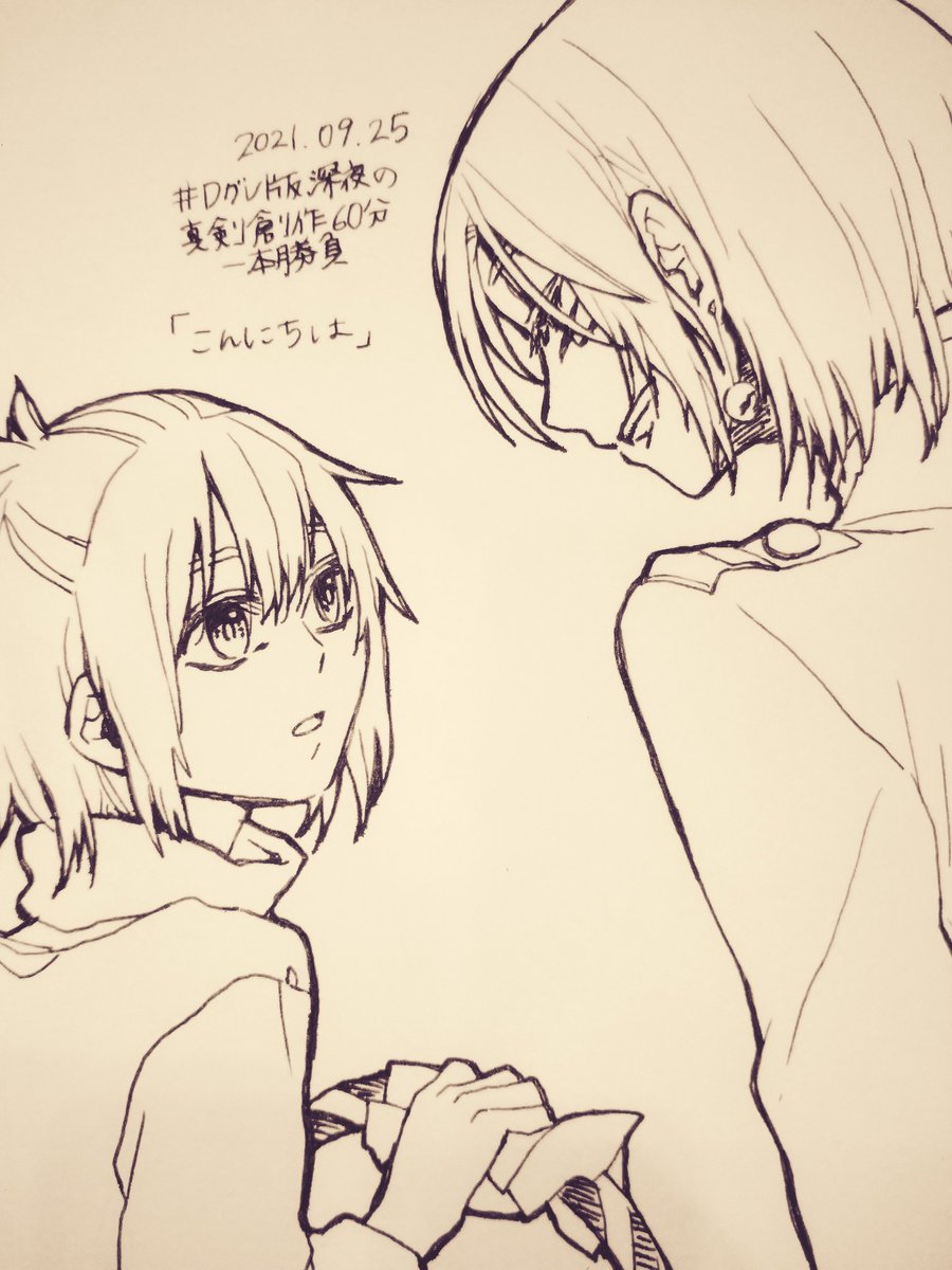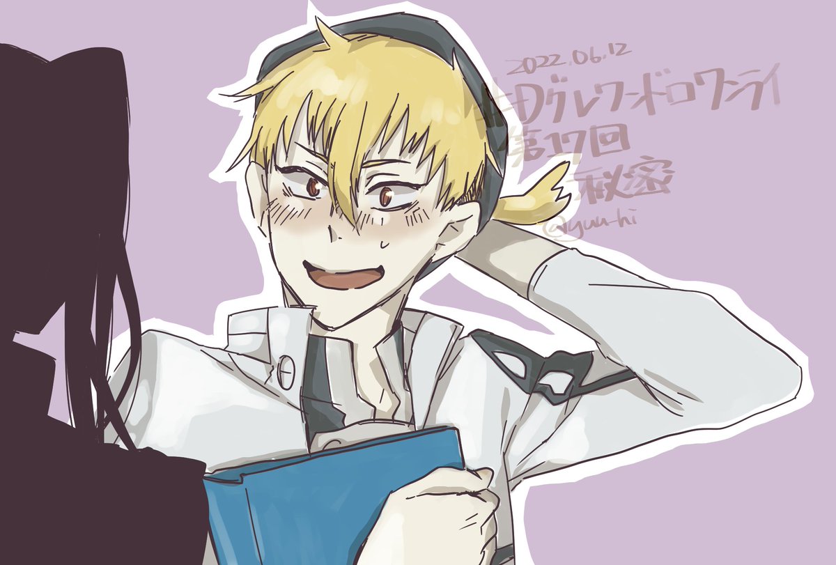第17回「秘密」 久しぶりに参加できました!2Hくらい (当社比で)可愛い照れ顔が描けたと思います笑 バクちゃんはできる子なので本人にエンカウントしても蕁麻疹5秒前くらいで耐えてくれる気がする @1dr1wr_DGM #Dグレ版深夜の真剣創作60分一本勝負