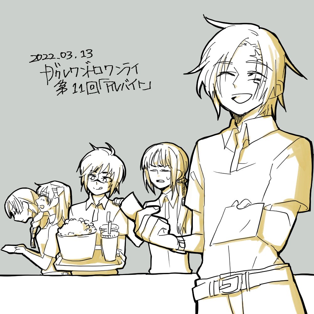 第11回「アルバイト」 映画館!各キャラの個性に合わせた配属にしたつもりですが、アルマとアレンさんは逆だったかもしれない… アルマ初描きです☺人懐っこさが出てるといいな @1dr1wr_DGM #Dグレ版深夜の真剣創作60分一本勝負