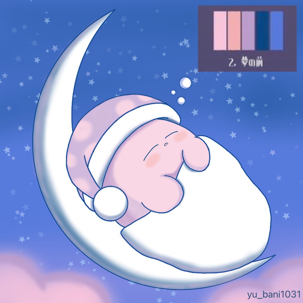 4枚目完成✨ 02.夢の前 (スリープカービィ) リクエストありがとうございました! #リプをもらった番号の色を使って絵を描く