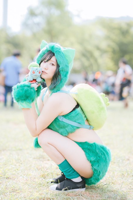 夏コミ3日目 フシギダネ🌿擬人化 ありがとうございました🤟❤️ めっちゃ綺麗に撮ってもらった🥺 photo▹▸(@Nessie44 ) #C96コスプレ #C96 #C96コス #コスプレ #らぶりつください