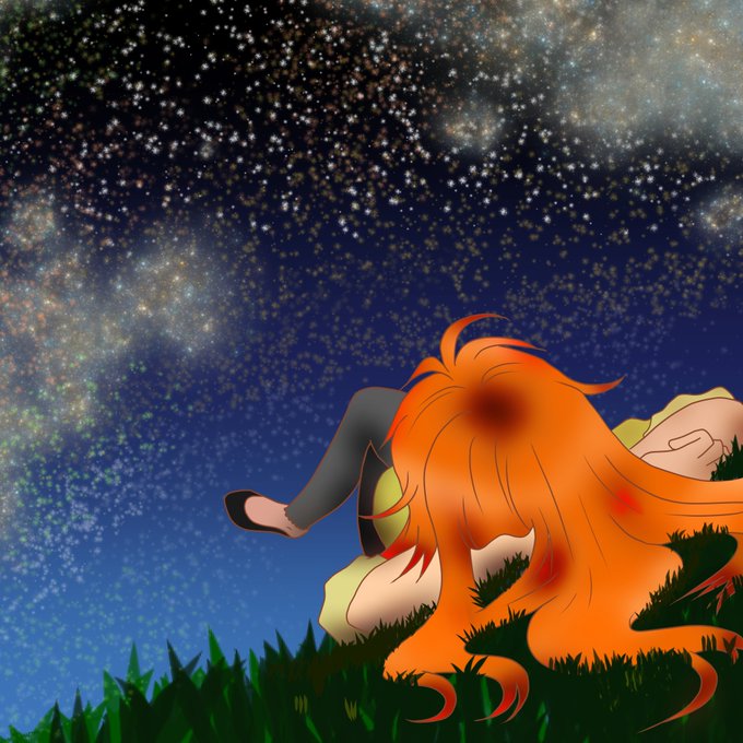デジタルイラスト練習中! 今回は星空と 寝そべり足組ポーズで頭こっち向き いろいろと詰め込みすぎたけど楽しかったですまる #デジタルイラスト #星空