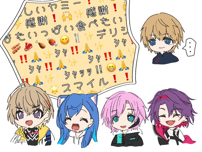 46 277 #絵クス絵画 #エビオ誕生祭りでもっとちょうだいよ いっぱい美味いもの食え の絵 お誕生日おめでとう!!!!! 23/08/01 00:08