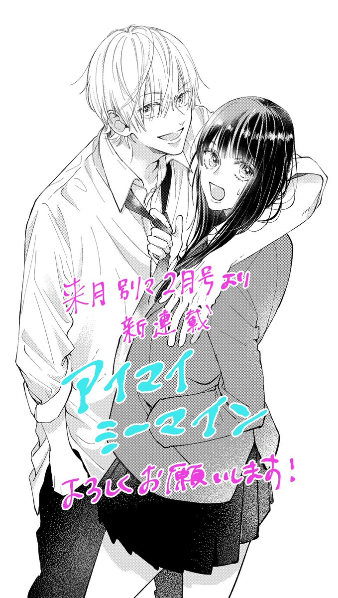 【お知らせ】 来月発売の別マ2月号より新連載 「アイマイミーマイン」始まります! 引越し先の隣の部屋になんだか柄の悪そうな男が…??みたいな感じです。 どうぞよろしくお願い致します〜!🙏✨