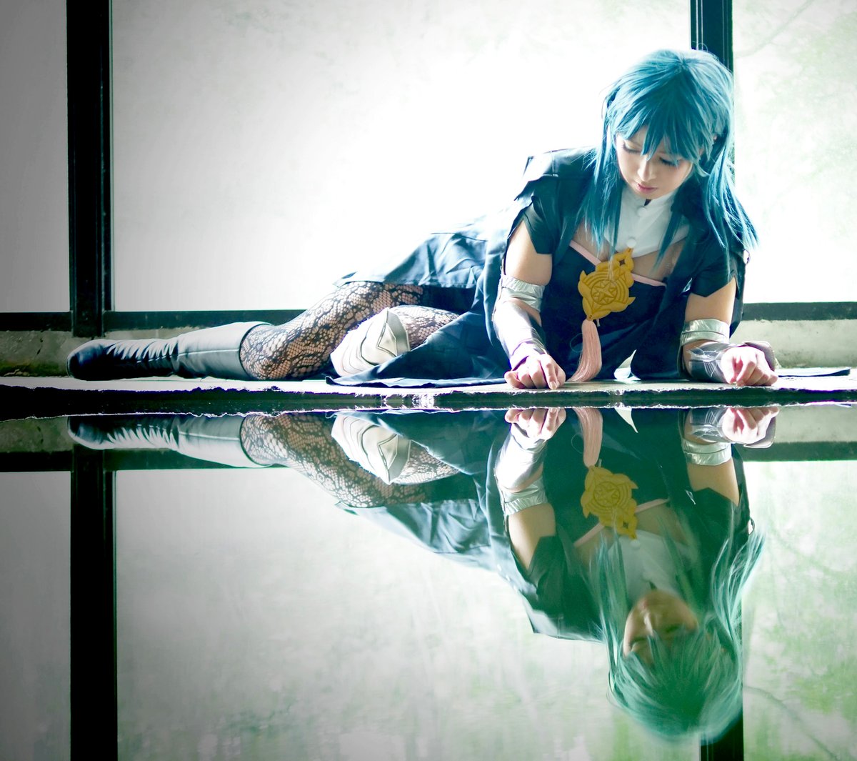 【コスプレ注意】コスプレ合宿写真第2弾。ソラナスタジオ&山中湖の廃墟スタジオでFE風花雪月のベレス先生をしてきました。友達が天帝の剣をつくってくれたよ~ ※水面の写真は髪色加工してみました。 #FE風花雪月
