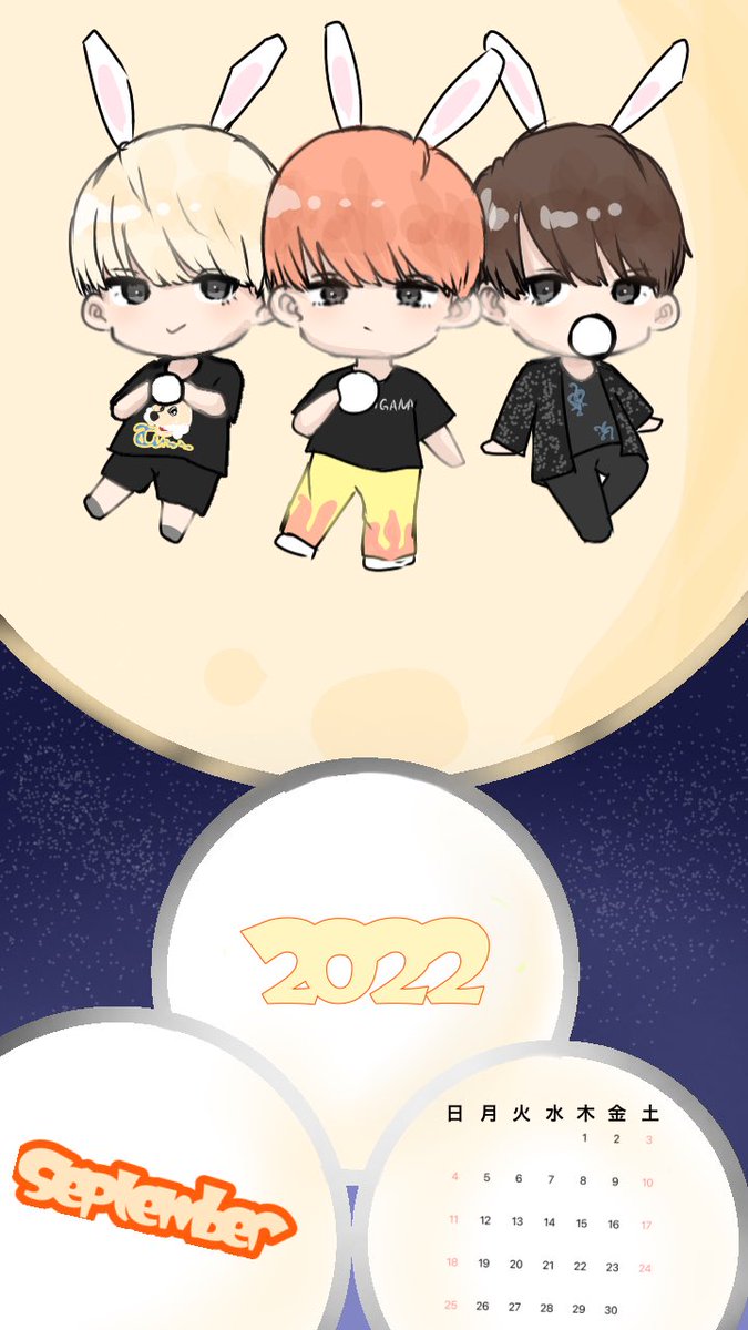 8 83 9月カレンダー出来た! お月見イメージで描きました🌕💫 #ノンラビ描いてみた 22/08/31 17:49