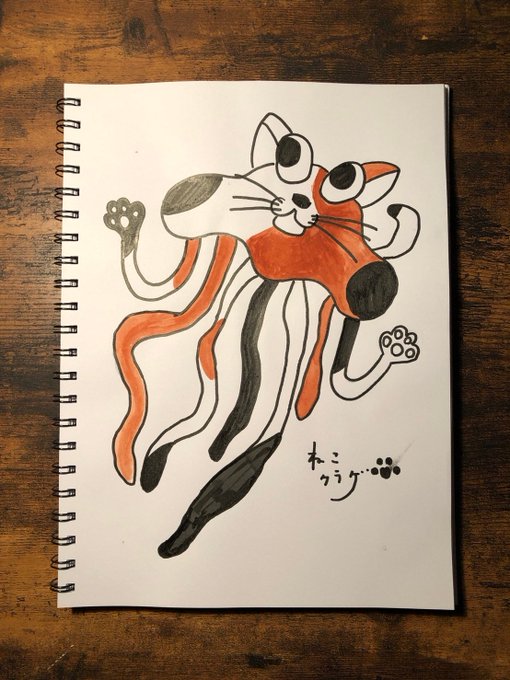 僕が好きな奴らを組み合わせるとこうなりました。 #イラスト好きさんと繋がりたい #ゆるいイラスト #みんなで楽しむTwitter展覧会 #落書き好きさんと繋がりたい #絵師さんとつながりたい #猫好きさんと繋がりたい #アナログイラスト #三毛猫 #クラゲ