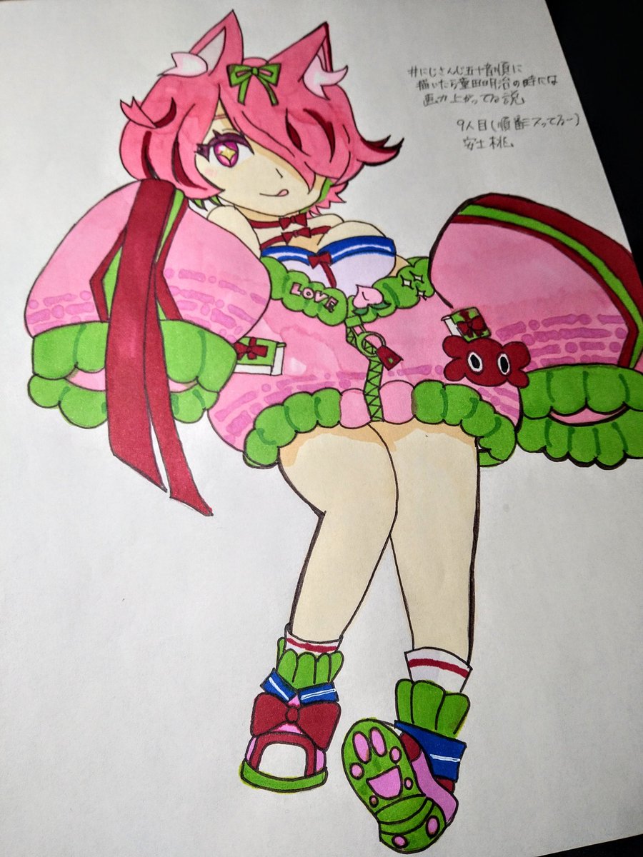 9人目 安土桃ちゃん!(順番ミスっちゃってごめんなさい🙏🙏) 描いててめっちゃ楽しかったよ! 個人的にかなり自信作です( ̄ー ̄)ニヤリ #にじさんじ五十音順に描いたら童田明治の時には画力上がってる説 #もっとももちゃんあーと