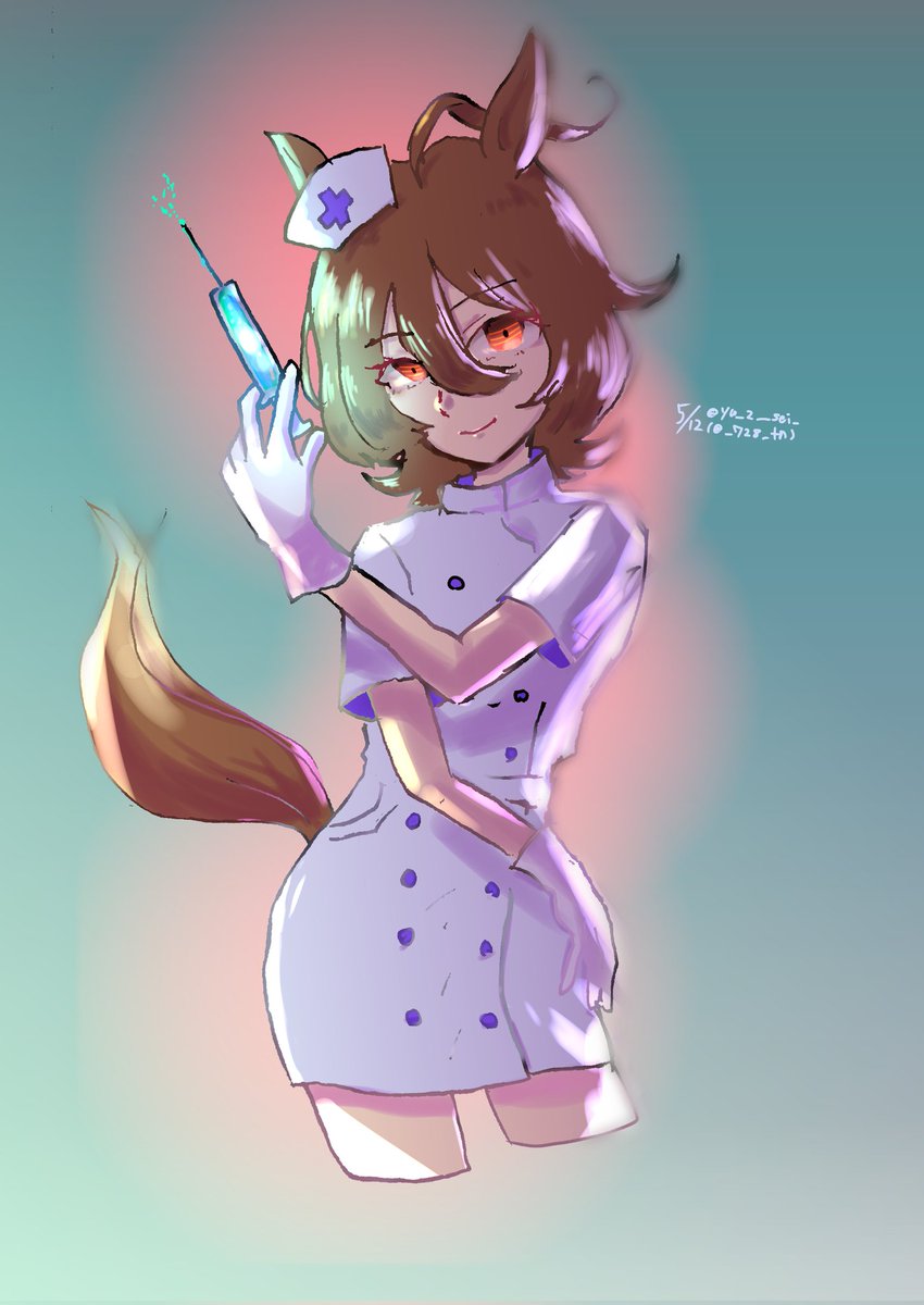 #ウマ娘版深夜のお絵描き60分一本勝負 #ウマ娘版深夜のお絵描き60分一本勝負_20220512 #ウマ娘 #ウマ娘プリティーダービー 看護師アグネスタキオン💉💉 患者という名のモルモット☺