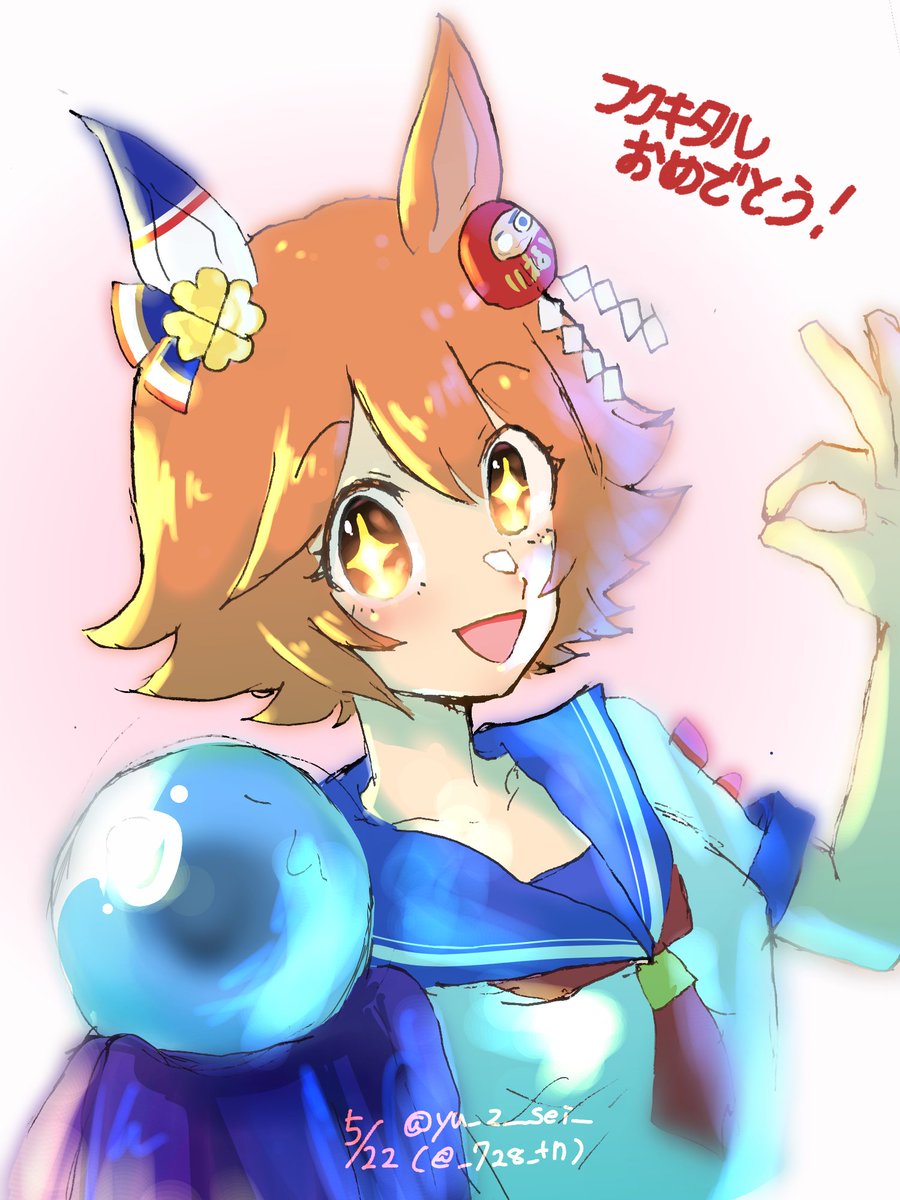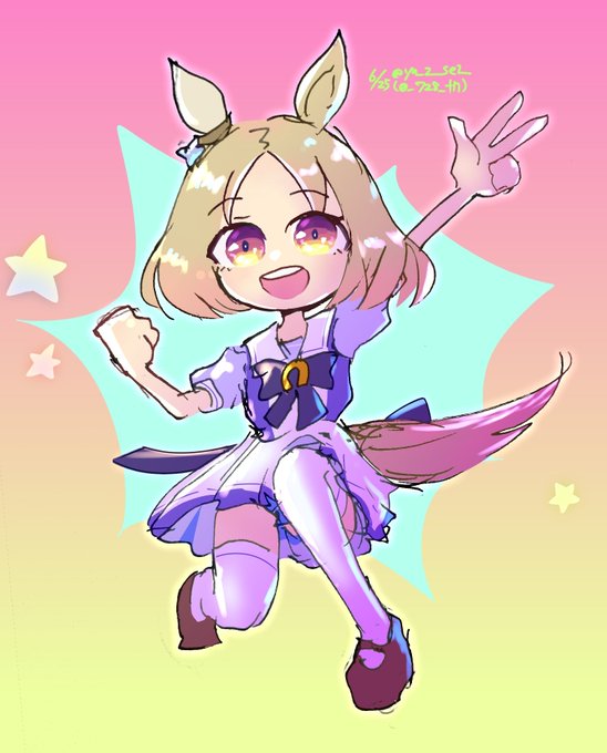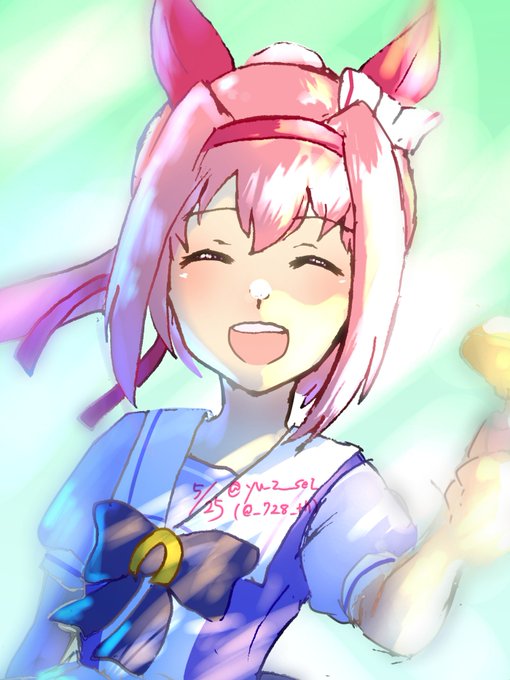 #ウマ娘版深夜のお絵描き60分一本勝負 #ウマ娘版深夜のお絵描き60分一本勝負_20220625 #ウマ娘 #ウマ娘プリティーダービー お題 【元気いっぱい😆🤟】 弾ける元気!ナリタトップロード!!!✌