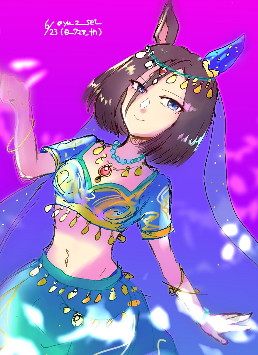 #ウマ娘版深夜のお絵描き60分一本勝負 #ウマ娘版深夜のお絵描き60分一本勝負_20220601 #ウマ娘 #ウマ娘プリティーダービー お題 【夏服・衣替え】 どう描けばいいか分からなくてこうなった!!!! マルゼンスキー💃💃💃