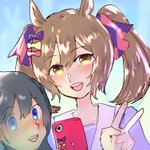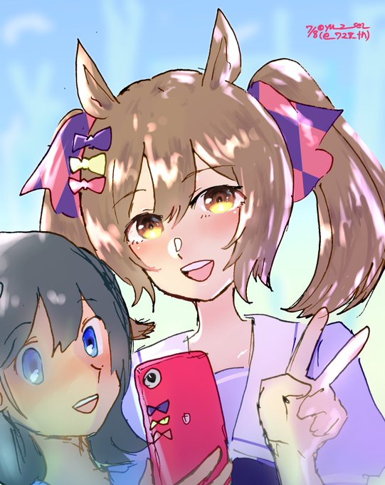 #ウマ娘版深夜のお絵描き60分一本勝負 #ウマ娘版深夜のお絵描き60分一本勝負_20220708 #ウマ娘 #ウマ娘プリティーダービー お題 【ファンサービス】 ファンと一緒にウマスタ撮ってくれる スマートファルコン ファル子しか勝たん💝