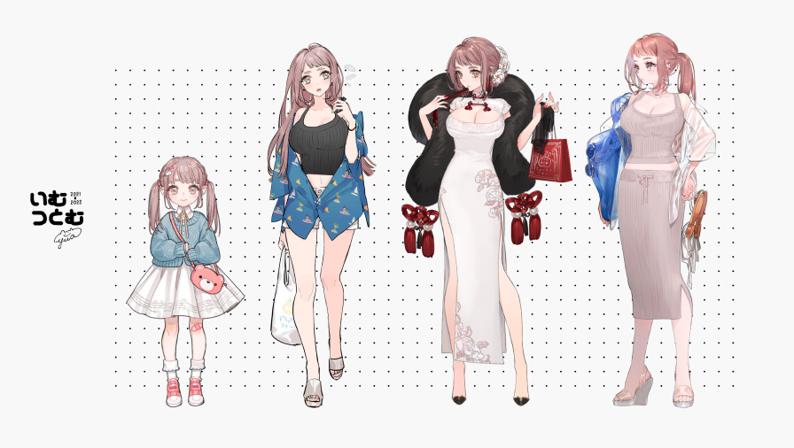タグ企画 #自創作女子イラストフェス01 に参加します🥳🥳🥳 創作キャラといろんなお洋服をらくがきで描くのが好きです