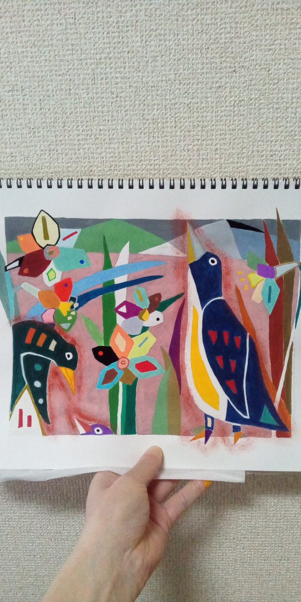 ペンギンと水仙、雪原 完成! #絵画 #絵描きさんと繋がりたい #美術ネットワーク