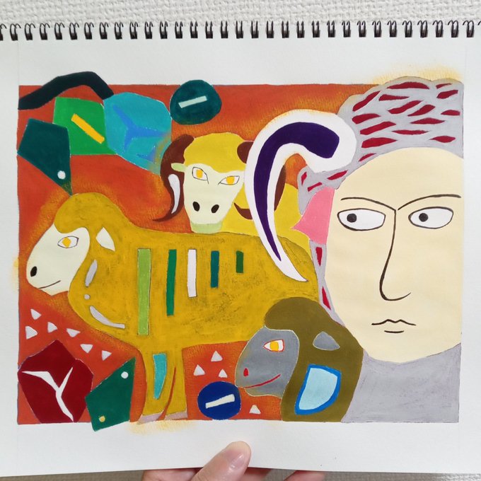 4 29 羊と羊男 完成! #絵画 #絵描きさんと繋がりたい #現代作家の環 #美術ネットワーク 23/04/07 03:29