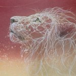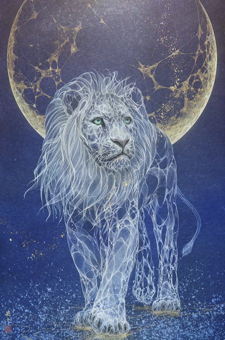 88 863 P30 月光の瞳 2023 雲肌麻紙、典具帖紙に岩絵具、金泥、銀泥、箔、顔料 百獣の王といえど、ライオンの穏やかな表情が好きです。 23/06/23 06:06