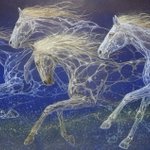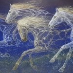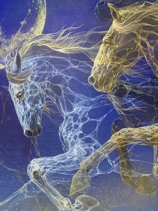 45 510 引き篭もりの自分の代わりに、気持ち良く風になる馬を描いた。 P50 天つ風 2022 雲肌麻紙、典具帖紙に岩絵具、金泥、銀泥、箔、顔料 22/09/03 10:33
