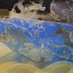 64 461 前回部分の絵を載せたところ、かなり多くの方に見てもらえたようで、、、 一応仕上がりましたので、載せます。 M100号 天翔る 2021 雲肌麻紙、典具帖紙に岩絵具、金箔、白金箔、金泥、銀泥、顔料 21/08/21 12:23