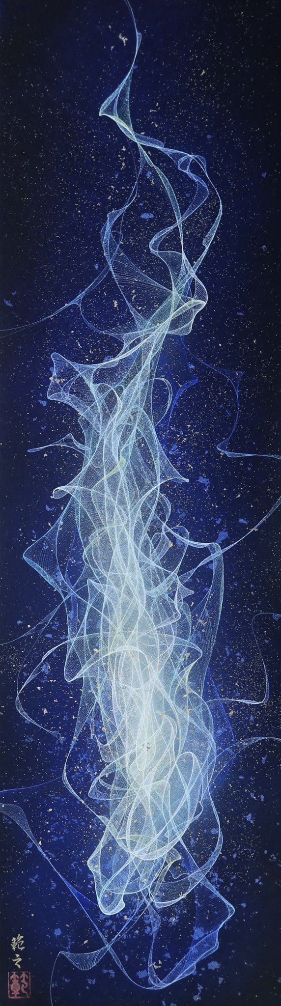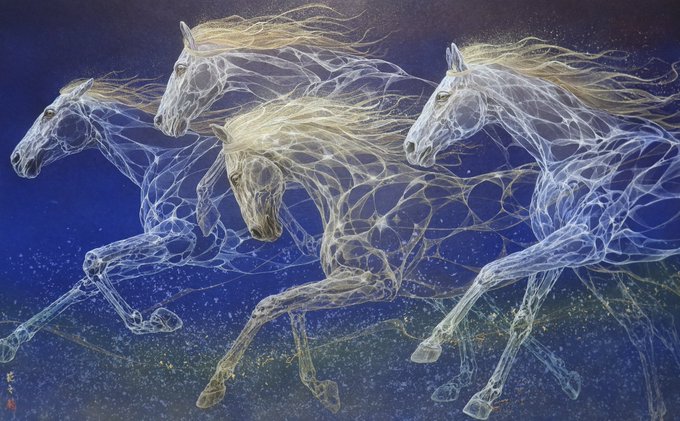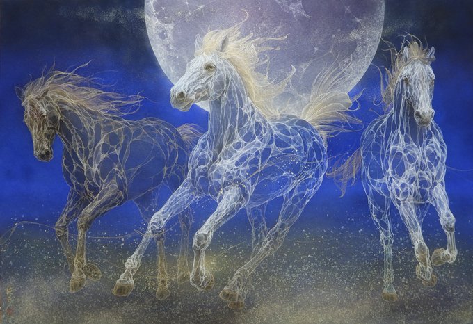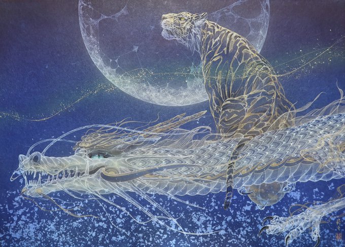 前回部分の絵を載せたところ、かなり多くの方に見てもらえたようで、、、 一応仕上がりましたので、載せます。 M100号 天翔る 2021 雲肌麻紙、典具帖紙に岩絵具、金箔、白金箔、金泥、銀泥、顔料