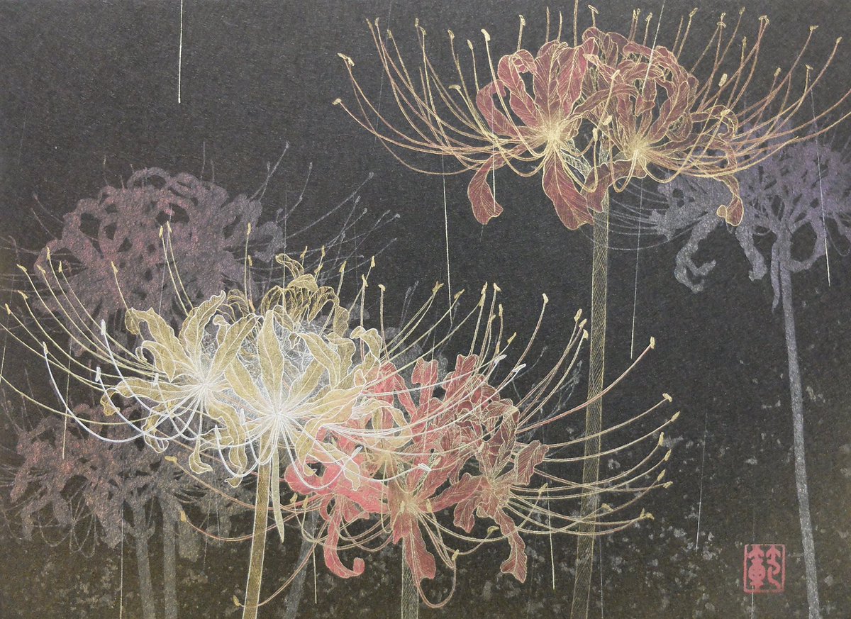 #ゴールデンウィークSNS展覧会 日本画材を使い、線描で動植物を描きます。