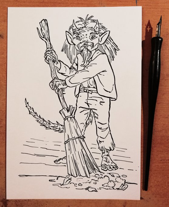 For this round of #drawtober, the theme is folklore. So I chose to draw the house spirit Domovoi. They take care of the house and protect the family. A strange but friendly fellow! #inktober #inktober2020 #drawtober2020 #artober #traditionalart #ink #folklore #artistsontwitter
