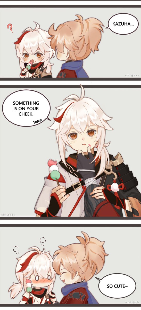 Do you like TAMA? (1/2) Repost with the artist's permission. Artist: 时兔aya #Kazuha #kazuhasfriend #tomozuha #GenshinImpact