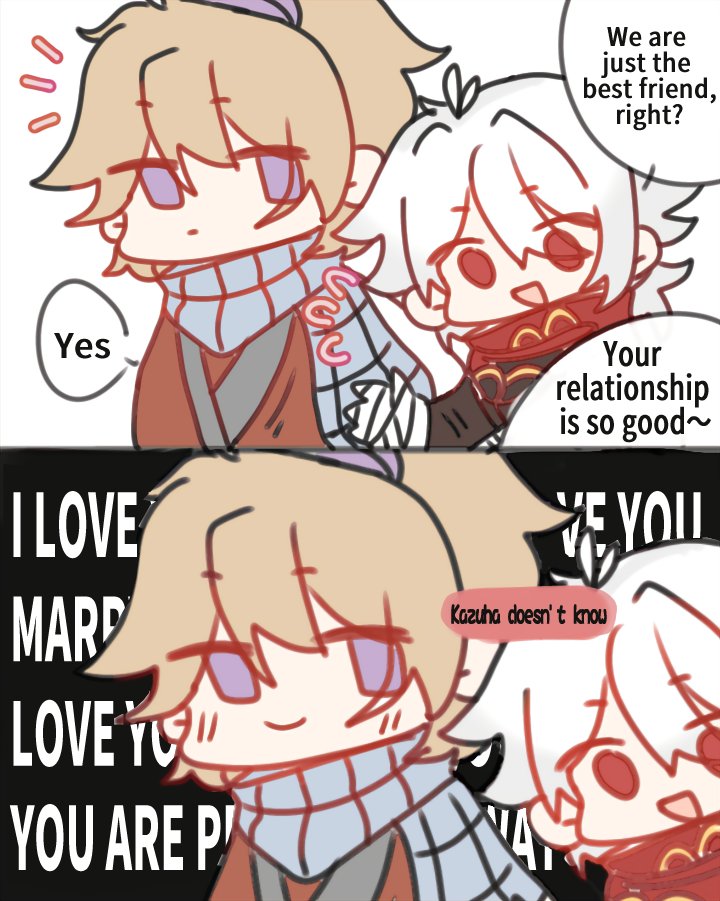 🐱🍁 Reposting with the artist's permission. Artist: 馒头君A Translating by Yuanyou #Kazuha #kazuhasfriend #tomozuha #GenshinImpact