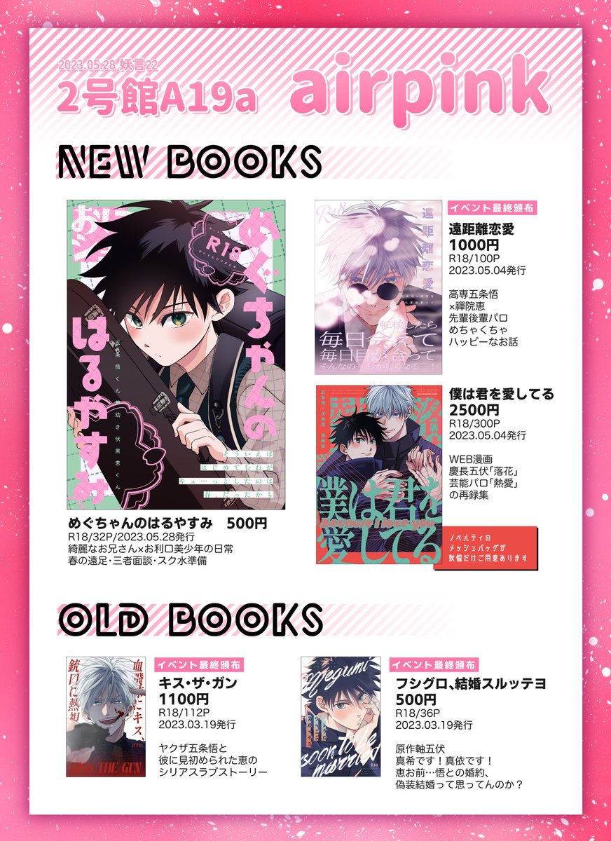 🌻【五伏】お品書き【8/20インテ大阪/超妖言2023夏】 宜しくお願いします〜! 台風とヤマトさんの状況で頒布物変わります(詳細は2枚目に) pixiv.net/artworks/11088…