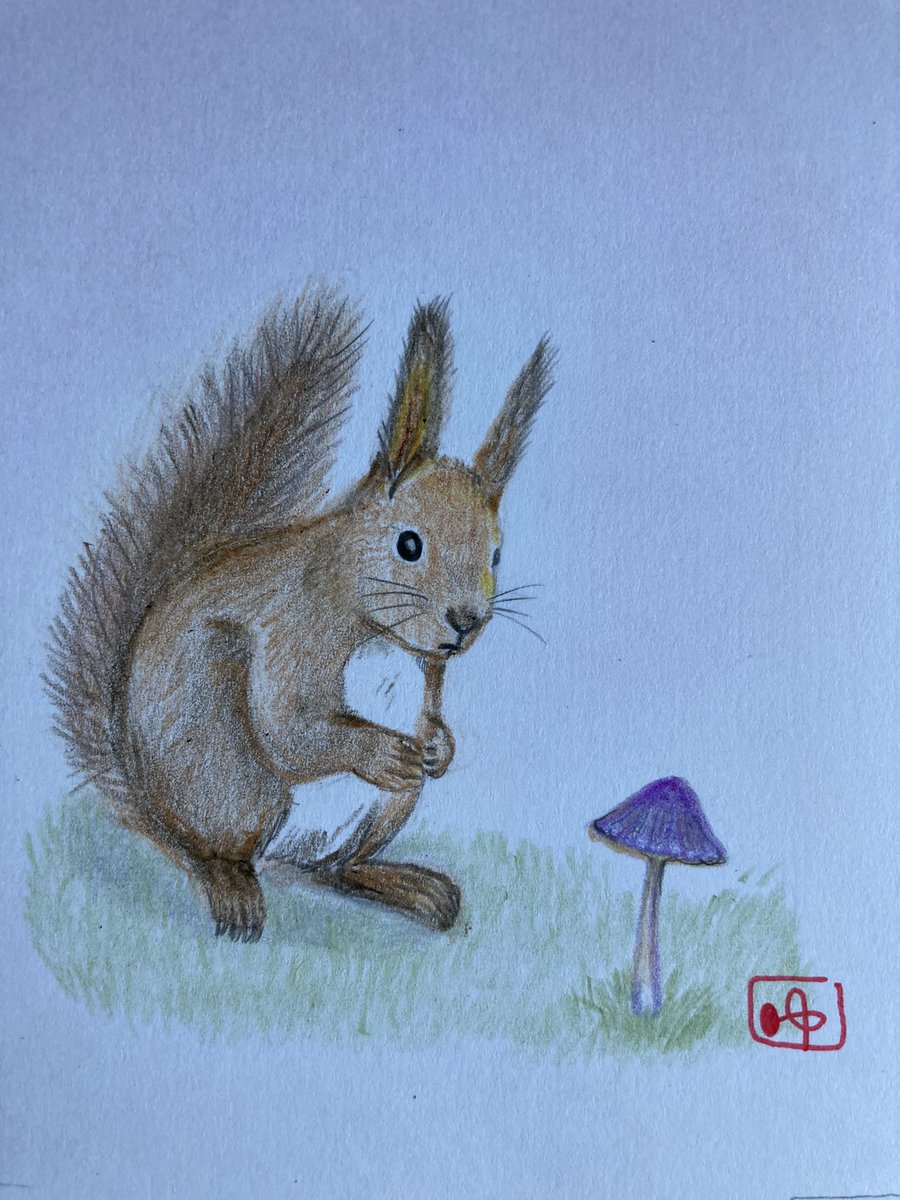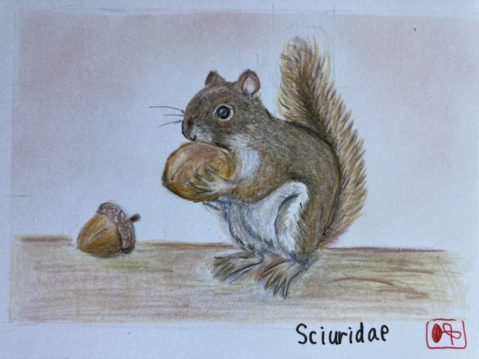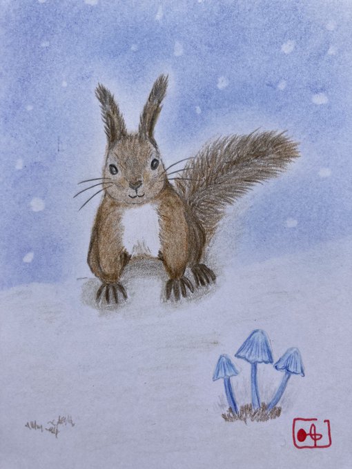 #色鉛筆画 #エゾリス #絵が上手くなりたい おはようございます 最近、リスが可愛らしくて🐿リスの画像ばかり見てます❤️ 今朝の雲はなんだかパワフルで、鳳凰?って思って病気で患っている知人の回復を願いました✨✨届け〜✨