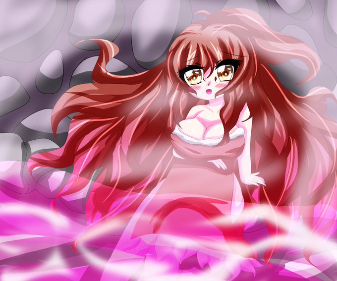 今年は混浴ワードが出てきたから 色っぽい色のお湯にした 色っぽい色のお湯にしほらイメージピンクだし、やっぱりむっつ、いや大胆さも!!ある娘なだけだから!!、やっぱりむっつ、いや大胆さもある娘なだけだから!! #アイギスお絵かき