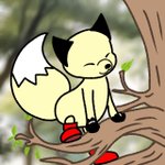 おはようございます😃 木の上の方が風が気持ち良いかもしれない🦊 今日も元気に行ってらっしゃい♪ #長ぐつきつね #一日一絵 #ゆるいイラスト #きつね #イラスト