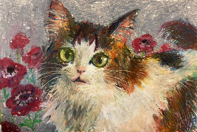 小学生の時のペンテルクレヨンで猫かいた🐈 楽しかったから新しいクレヨン買う!!