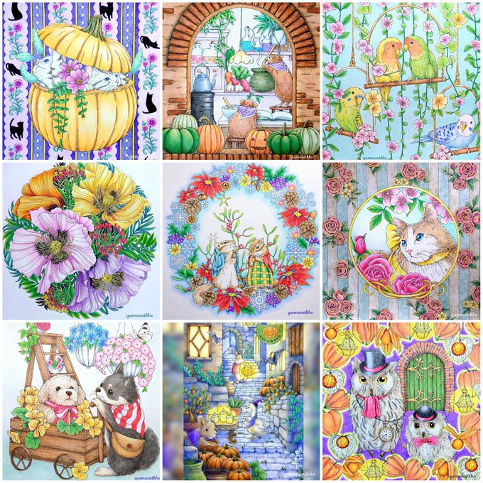 今年のトップ9✨ これからも楽しんでいくよ〜🍀 #大人の塗り絵 #色鉛筆
