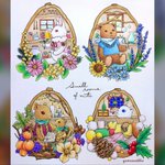 1 25 #うさぎさんのメルヘン空想図鑑 より Index に載ってた小さいイラスト3点完成🍀 色鉛筆を変えて塗り心地を楽しんでみた💕 #大人の塗り絵 #色鉛筆 #cotolie 23/03/14 20:21