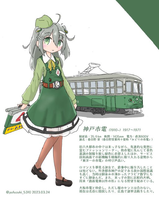 55 170 #鉄道擬人化 #イラスト 難産の末、神戸市電を擬人化しました 23/03/24 20:25