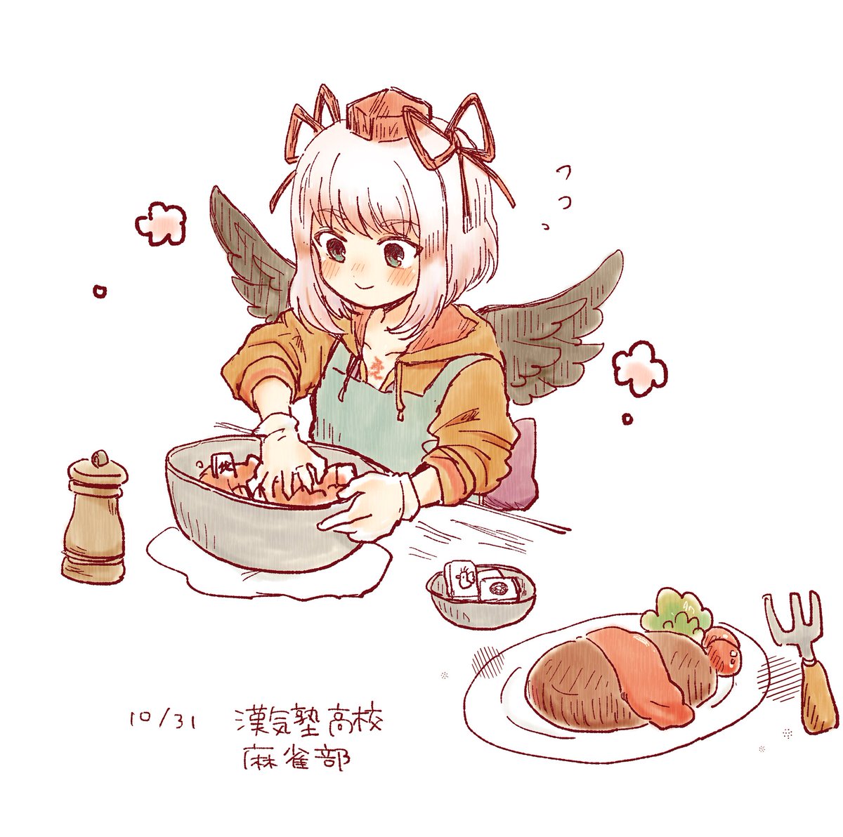113 517 #黒乃の巣 七対子が苦手な教え子のためにハンバーグに入れてあげる千羽先生 20/11/01 12:58