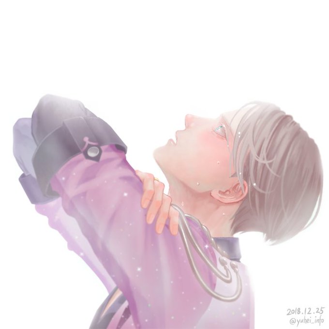 YOI再放送が最終回を迎えてヴィクトルがトレンドに入ってるのがうれしくて 3年前に描いたあの場面の勝生勇利視点をちょっとだけ修正して再掲 劇場版いつまでも待ちます pixiv.net/artworks/60562…
