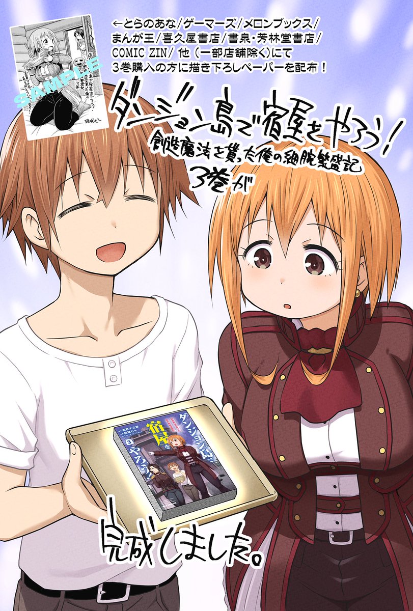 7/27に『ダンジョン島で宿屋をやろう!創造魔法を貰った俺の細腕繁盛記』3巻が 発売されますよ~! 今回も色々描き足し描き直しで色々雑誌掲載時より増量ですー。お風呂も出来ましたしね… Amazonはこちらから→amazon.co.jp/gp/product/475… よろしくお願いいたしますー!!!